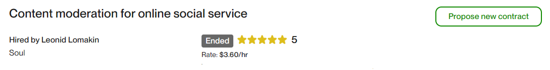 En este trabajo se moderaba un sitio de citas, eliminando comentarios abusivos, perfiles inapropiados y tambien eliminando imagenes. Habia un horario que cumplir pero al ser tareas sencillas, era posible trabajar estando en un restaurant, playa o evento familiar.